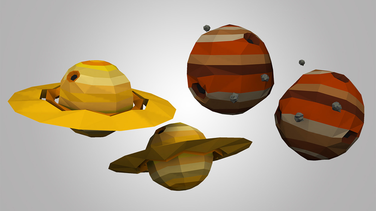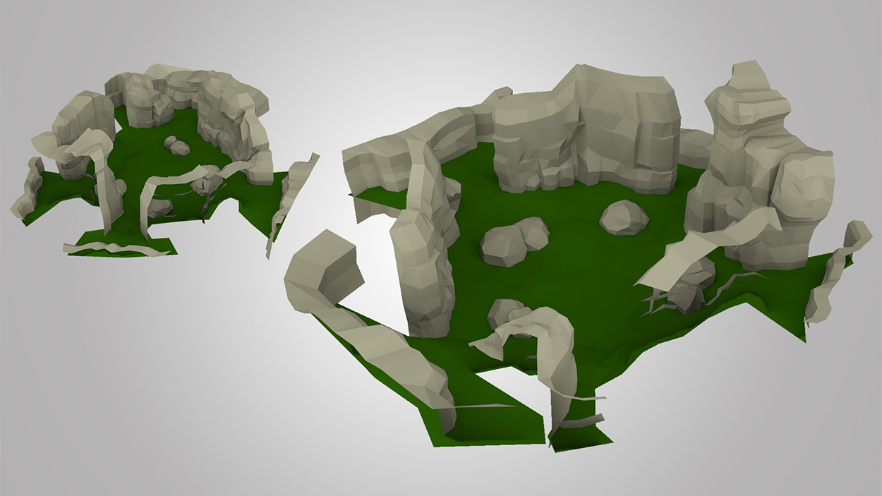 As we were aiming to support low and mid-range phones, the art style had to be simplistic enough to allow device processing power and memory usage be saved for procedural generation and physics system requirements. This meant models were stylised through shape, smoothing groups, and vertex colours rather than detailed textures, high-poly models, or fancy lighting.