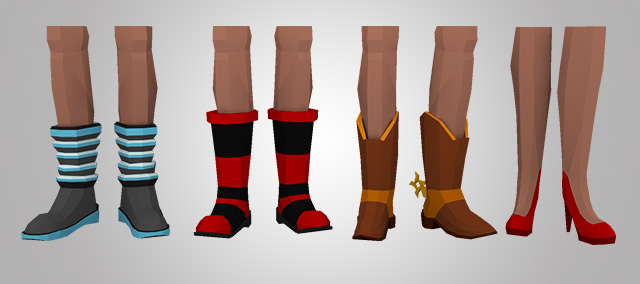 Gameplay assets, environments, props, and character accessories were split into modular meshes designed to batch dynamically inside Unity; reducing draw calls significantly. Every 3D object in the game used a single (and tiny) texture sheet made up of colour swatches, in addition to the optimisation benefits this allowed quick and complete colour palette overhauls.