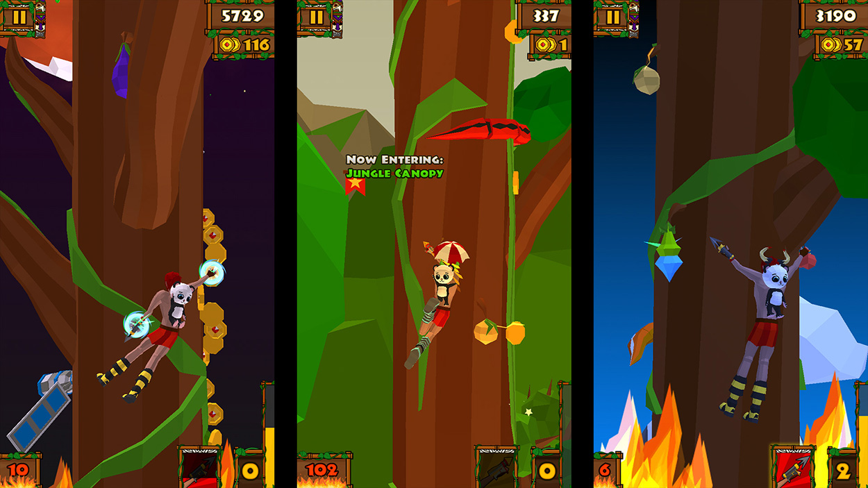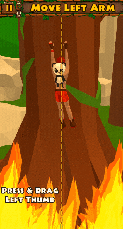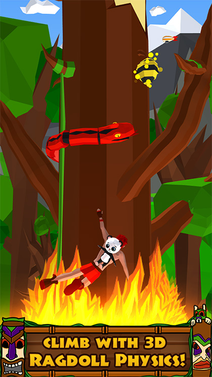 A raging fire is spreading through the jungle putting local wildlife in danger. With all directions set ablaze by a fiery inferno, rescue the lovable but exceptionally inflammable baby panda and take the only route out; up the endless jungle tree! Using your thumbs to control the ragdoll climber’s hands you can swipe, swing and fling your way to safety.