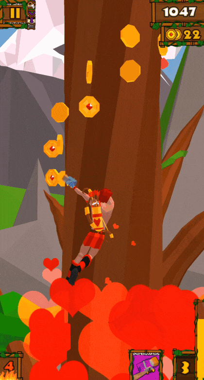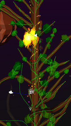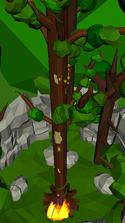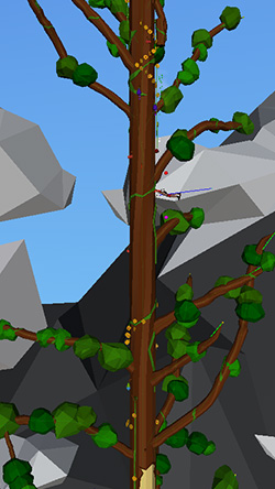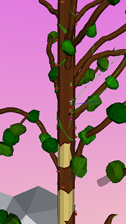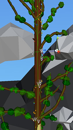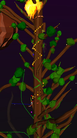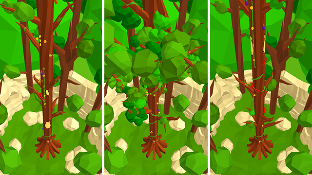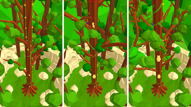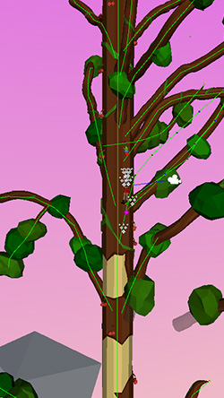 As tree assets and every gameplay object could be arranged in any order, a multi-directional modular asset set was crafted to snap together perfectly at angled increments - allowing a vast number of unique arrangements. The entire tree generation was created bespoke to batch draw all it's calls dynamically to remain performant on low-end mobile hardware. The gameplay system layers on top aimed to provide endless but fair layouts that provide emergent gameplay opportunities to compliment the entertaining and sometimes unpredictable player physics.