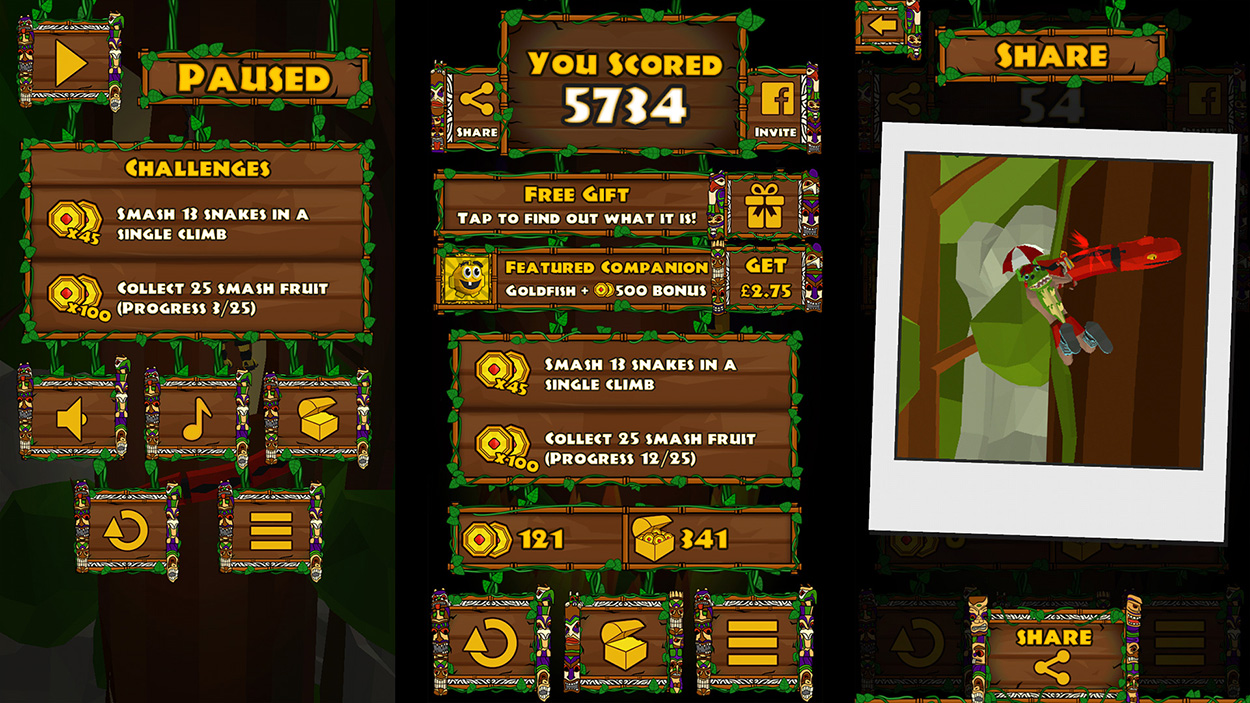 The multi-platform nature of the game necessitated great care to ensure a unified design across a variety of device resolutions, aspect ratios, and hardware compatible file formats. Finally, the menus were vigorously bug tested and polished with animated elements in a fashion that allowed for independent screen triggering as well as staged scenarios like tutorials.