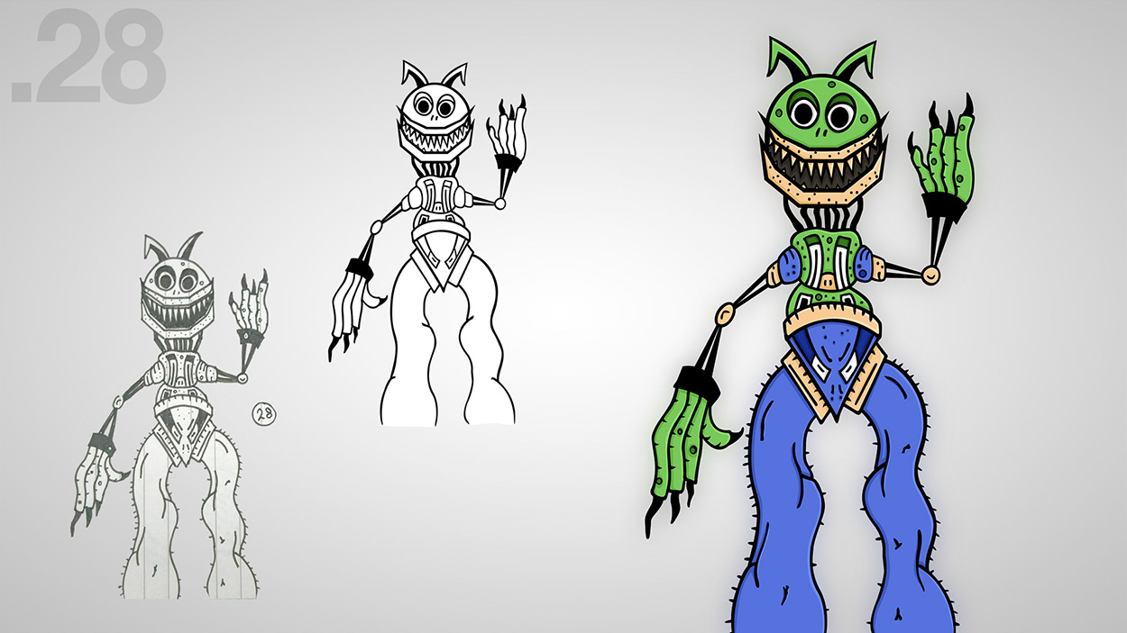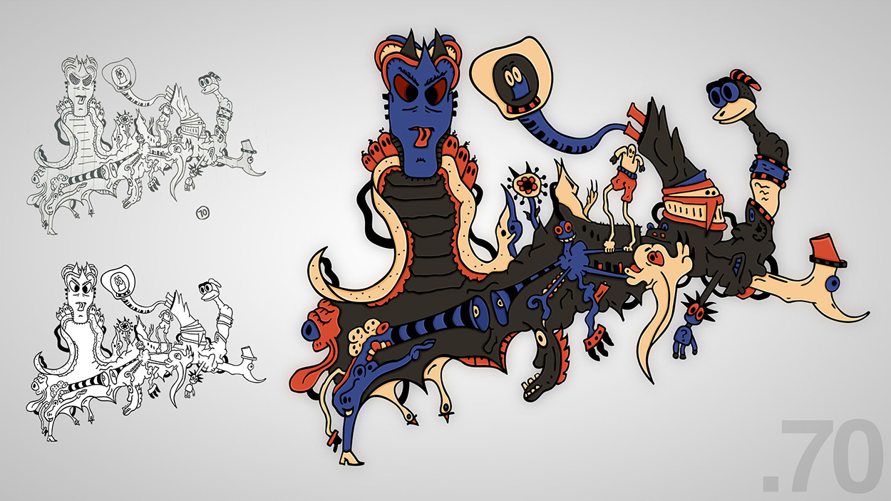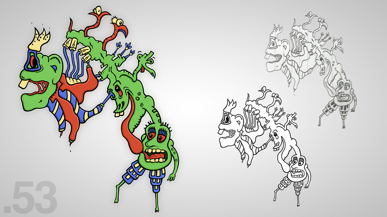 Back in 2016 I forced myself to do a single sketchbook doodle every day for 10 weeks. I would deliberately not have any pre-planned ideas and instead try to empty my mind of all thought and just doodle slowly to see what forms. At the end of this process I started digitising them, and below are the ones I've done so far.