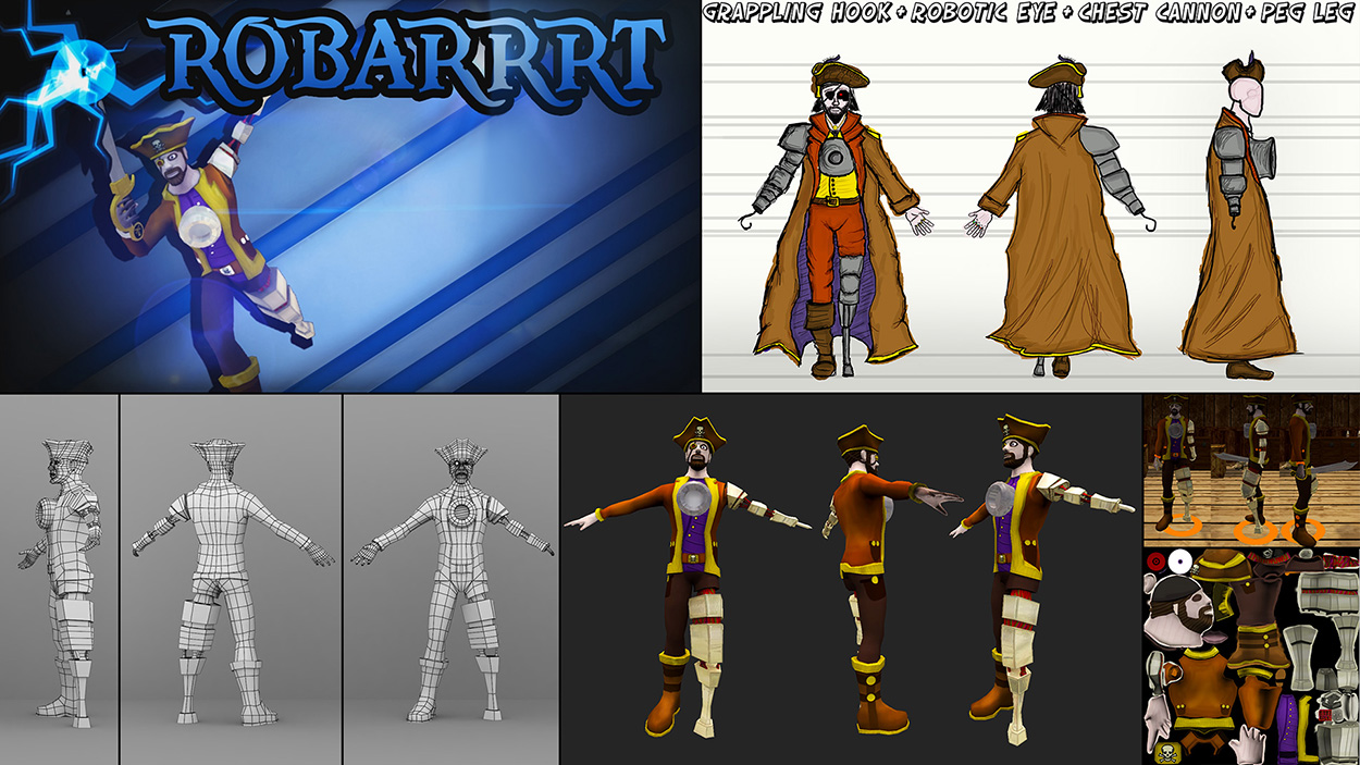 We came up with many wild character ideas and concepts that we were excited to make, but as with all development dreams, we had to come back down to earth and prioritise actually getting something done. Chosen designs were textured, modelled, optimised, and prepared with gameplay scripts.